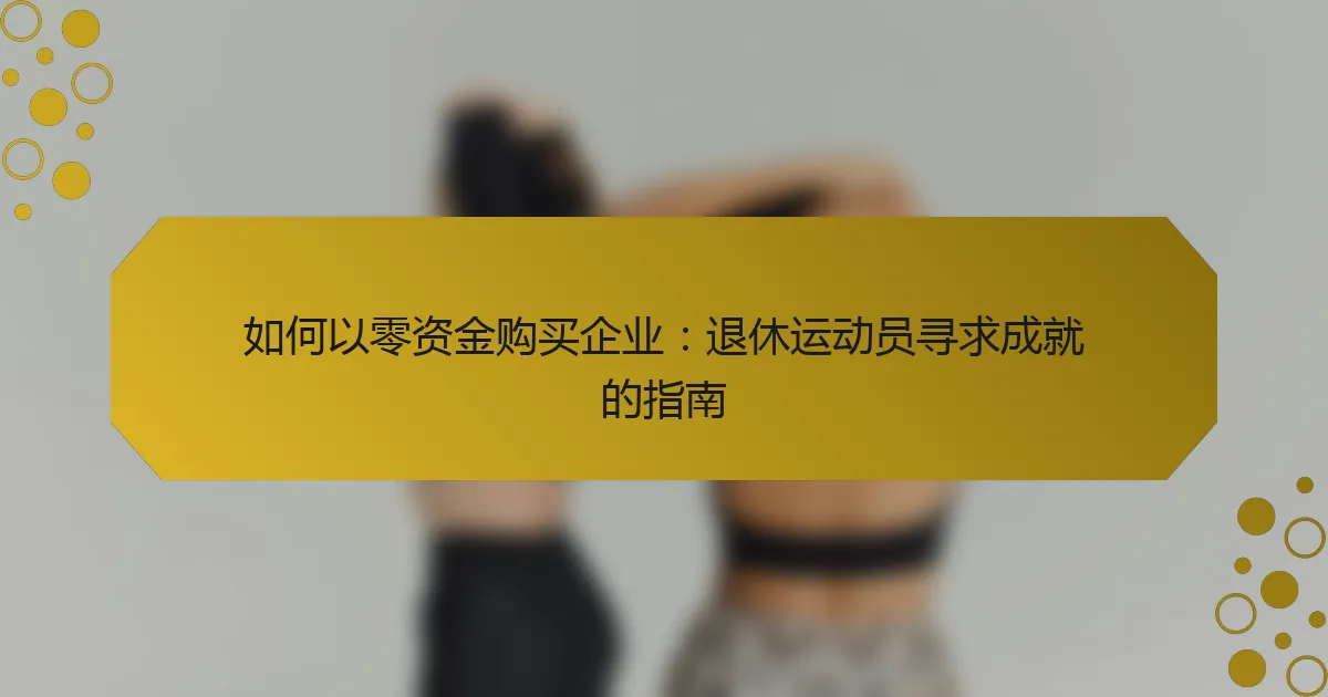 退休运动员常常寻求商业所有权,以实现个人满足和财务安全。本指南探讨了如何利用独特的技能和网络、创造性融资选项,以及在向创业过渡中克服挑战。了解如何有效建立品牌、获取资源和导航商业环境。 退休运动员购买企业的主要动机是什么? 退休运动员通常寻求购买企业以实现个人满足、财务安全和利用他们的品牌。许多人希望在职业生涯后保持活跃,利用他们的竞争技能开展新事业。此外,他们可能希望明智地投资自己的储蓄,以确保长期的稳定。他们运动员背景的独特属性可以在品牌和市场营销中提供罕见的优势,吸引欣赏他们成就的客户。 创业如何促进运动员退役后的个人满足? 创业可以显著增强退休运动员的个人满足感,因为它提供了新的目标和参与感。从体育转向商业使运动员能够以有意义的方式利用他们独特的技能和经验。 退休运动员在体育生涯后常常寻求满足感,而创业提供了一个自主和创造的平台。他们可以追求激情,创造就业机会,并为社区做出贡献。这种转变可以带来重新的身份感和成就感,类似于他们在体育中所经历的。 通过利用技能、建立网络和寻求合作伙伴关系,可以在没有资金的情况下创业。许多退休运动员通过利用他们的品牌吸引投资者或启动需要最低初始投资的小型企业而取得成功。这种方法与他们的竞争精神和成功驱动力相一致。 总之,创业为退休运动员提供了一个强大的途径,以寻找个人满足,使他们能够重新定义超越体育生涯的成功。 参与商业活动可以带来哪些心理健康益处? 参与商业活动可以通过培养目标感和成就感显著增强心理健康。这种参与可以导致自尊心的提高、社交联系的改善和结构化的日常生活,这些都有助于情感健康。此外,创业的挑战可以刺激认知功能,为创造力和解决问题提供有益的出口。因此,退休运动员可能会在生活的这个新阶段找到满足感和满意度,积极影响他们的整体心理健康。 退休运动员可以使用哪些策略在没有资金的情况下购买企业? 退休运动员可以通过利用他们独特的技能、网络和经验在没有资金的情况下购买企业。他们可以探索合作伙伴关系、寻求投资者,或利用创造性融资选项,如卖方融资或收益分成。与其他企业家合作也可以提供获取资本和资源的机会。 有哪些最有效的融资选项可用? 在没有资金的情况下购买企业的最有效融资选项包括卖方融资、合作伙伴关系和资产利用。卖方融资允许买方分期支付卖方,减少前期成本。合作伙伴关系可以提供共同投资和运营责任。利用资产涉及使用现有资源来获得贷款或吸引投资者。这些方法使退休运动员能够在最小化财务风险的情况下追求商业机会。 如何利用合作伙伴关系帮助收购企业? 利用合作伙伴关系可以显著增强在没有前期资本的情况下的商业收购机会。与已建立的实体合作可以提供成功交易所需的资源、专业知识和网络。合作伙伴关系还可以分担风险和责任,使收购过程更易于管理。此外,与具有互补优势的合作伙伴对齐可以创造一个引人注目的价值主张,吸引潜在卖家。 卖方融资在企业收购中扮演什么角色? 卖方融资为企业收购提供了灵活的选项,使买方能够直接从卖方获得融资。这种安排可以促进交易,而无需大量的前期资本,使其对寻求投资企业的退休运动员特别有吸引力。通过与卖方直接谈判条款,买方通常可以实现有利条件,例如较低的利率或延长的还款期限。卖方融资的这一独特属性可以增强以有限资金收购企业的整体可行性。此外,它促进了合作伙伴关系的心态,因为双方都对企业的成功有投资。 可以采取哪些创造性的方法来寻找零成本的商业机会? 利用网络、合作伙伴关系和创造性融资来发现零成本的商业机会。退休运动员可以利用他们的联系和个人品牌来谈判股权合作伙伴关系或寻求赞助。与当地企业合作进行合资也可以最小化成本。此外,考虑以技能或服务进行以物易物,以换取商业资源。探索专门为退休运动员提供的资助机会可以在没有前期成本的情况下提供资金。 退休运动员在商业所有权中面临哪些独特挑战? 退休运动员在商业所有权中面临独特的挑战,包括缺乏经验、身份转变和网络困难。许多人在将他们的体育名声转化为商业成功时感到困难。 从竞争环境转向商业可能是令人畏惧的。运动员通常缺乏管理、财务或市场营销方面的正式培训。这一差距可能会妨碍他们做出明智的决策。 网络建设是另一个挑战。虽然运动员在体育界可能有强大的联系,但这些联系并不总是能转化为商业世界。建立一个新的网络需要时间和精力,这可能会让人感到不堪重负。 此外,成功的压力可能是巨大的。运动员习惯于获胜,而在商业中对失败的恐惧可能导致压力和焦虑。这种压力可能会影响判断力和决策。 从运动员到企业家的转变如何影响心理健康? 从运动员转变为企业家可能会显著影响心理健康,因为身份和日常结构的变化。运动员在退役后常常面临失去目标的情况,导致孤独感和焦虑感。参与创业可以提供新的目标感和满足感,但也会引入财务不确定性和决策压力等压力源。 研究表明,找到有意义工作的退休运动员报告心理健康改善。利用运动纪律和团队合作的独特属性可以增强创业成功,培养韧性和适应能力。然而,这些人在转型过程中寻求支持以减轻